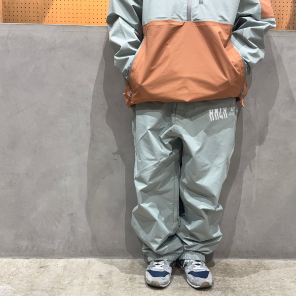 少しルーズで太めのスノーボードに定番のシンプルなパンツ。【KAI-JYU YAKKE】とのセットアップになっており、1サイズ、2サイズ上げてダボっと履くのもいいですし、ジャストサイズですっきり履くのもアリです。