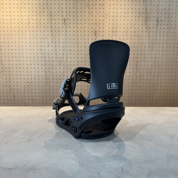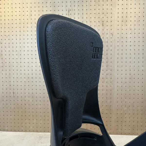 写真のように、ハイバックがくり抜かれた設計のため、柔軟性が増し、ストラップも柔らかめで、初心者でも扱いやすいようになっています。